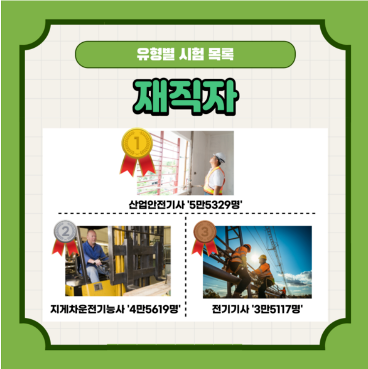 | 3위 | 자동차정비기능사 | 전기기사 | 전기기사 | 컴퓨터활용능력2급 |