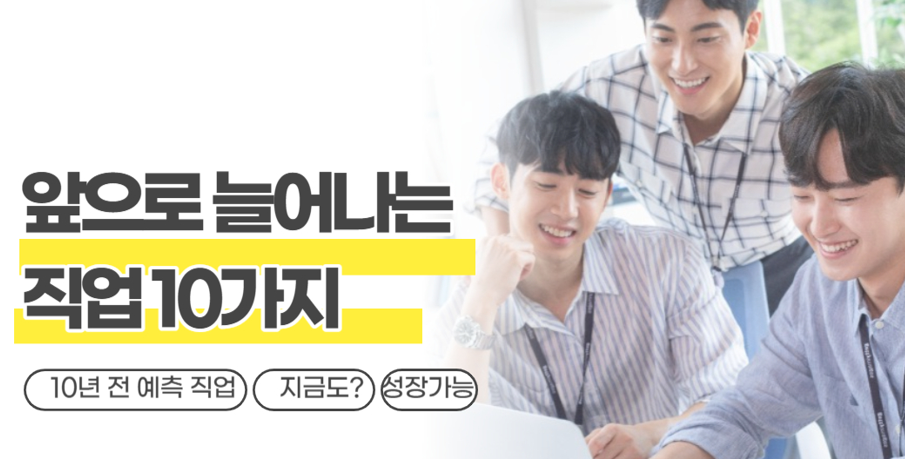 이렇게 10년 전에 예측했던 새로운 직업들이 10년 후인 지금 얼마나 활성화가 되었는가 알아보았는데요. 현재에도 상당수 인원이 종사하고 있고, 앞으로도 더욱 성장 가능성이 높은 직업이 되었습니다. 진로를 고민하는 청년층이나 취업준비생, 제2의 직업을 찾는 모든 분들에게 도움이 되었으면 좋겠습니다.