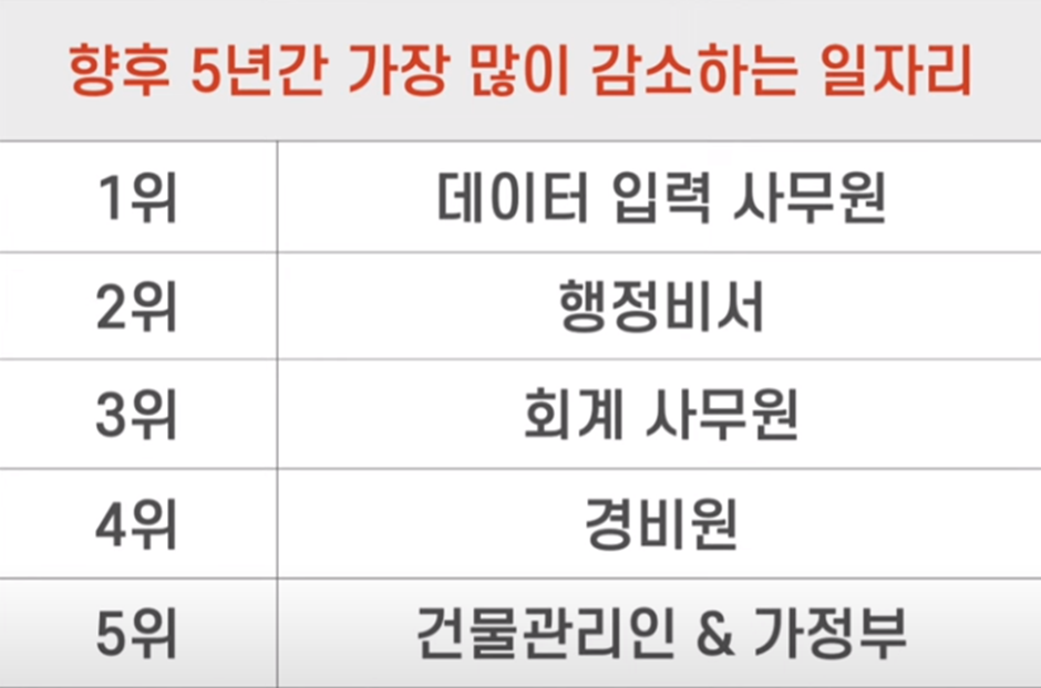 앞으로 나는 무슨 일을 하고 있을까? 어떤 직업을 가져야 할까, 직장인도, 취업을 준비하는 취준생들도 많이 고민하고 있을 텐데요 오늘은 도움이 되고자 <5년 후 늘어나는 직업, 감소하는 직업>에 대해서 가져와봤습니다. 저도 직장을 다니고 있지만, 항상 고민하는 부분입니다. 요새는 평생직장이 없어지다 보니,조금도 나를 위한 직업 선택을 하고 있는데요.