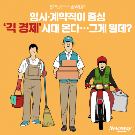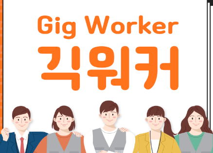 긱워크 : 독립형 일자리를 말하는데 고용주가 노동이 필요할 때 관련된 사람들에게 단기로 일을 맡기는 노동 형태를 말합니다. 정해진 출퇴근 시간이 없고 소속된 조직 없이 개인이 수입을 올리는 일이 긱워크의 일종입니다.
